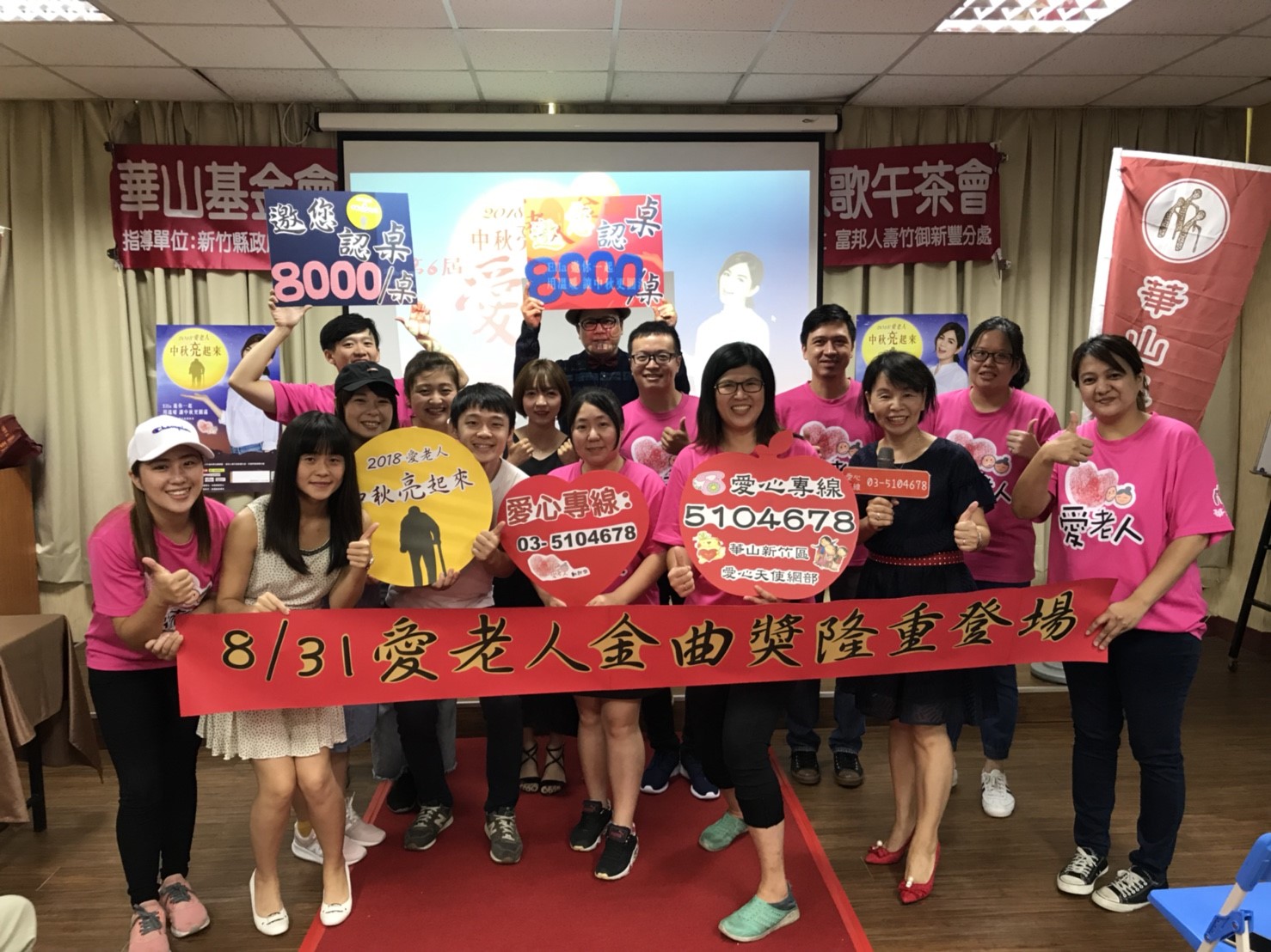 107年中秋佳節即將來臨,「小叮噹科學主題樂園」蘇仲華董事長深感「陪伴就是最好的禮物」,特結合華山新竹區辦理「愛老人中秋K歌金曲獎」,8月7日當天以評審團主席身分公布最佳國台語歌手、最佳客語歌手、最佳電影配樂及終生成就等大獎入圍名單,也邀請第五屆中秋K歌大賽兩位得獎爺爺一起暖身獻唱,藉此呼籲各界認桌助老,「捐出滿滿心意,中秋更有意義」。華山新竹縣站長張育瑜表示:「透過K歌大賽暨愛心餐會的形式,點亮弱勢長輩們生活,更有趣豐富。邀請各界共襄盛舉!」