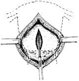 圖1 縱開切開宮體
