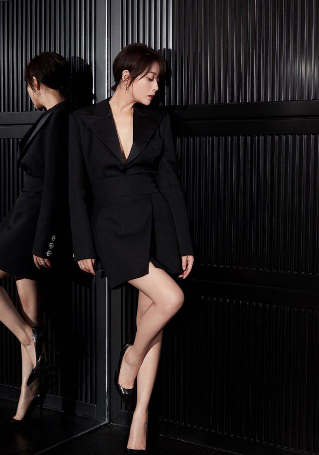 她是三項“視后”滿貫女星,黑色西裝裙出席活