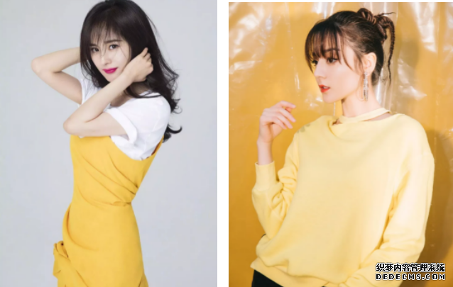 而且,黃色也是眾多女明星喜愛的搭配顏色,迪麗熱巴在微博上曬過一組照片,鵝黃色衛衣,空氣劉海,俏皮馬尾辮,青春又可愛;娜扎用黃色針織打底搭配淺色牛仔,經典中散發新意;小野馬泫雅,鵝黃色衛衣搭配耀眼紅唇,不用複雜搭配就十分亮眼;楊冪身穿黃色弔帶連衣裙,搭配簡單的白色上衣,更加明媚!