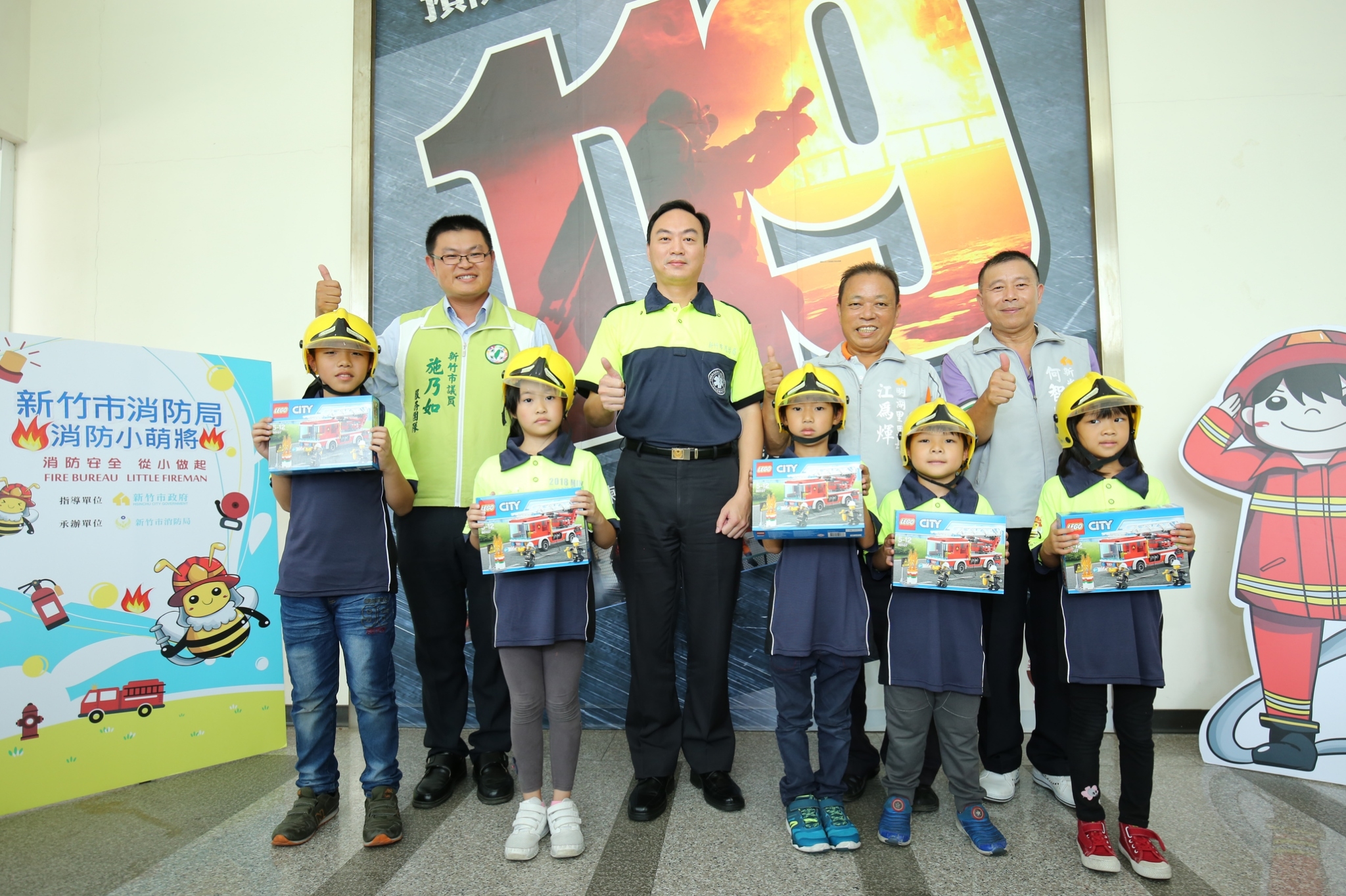 新竹市消防局長李世恭表示,小朋友活動全程穿著與消防同仁一樣的常訓服,在火災搶救體驗中,更可以穿上特別訂作的「迷你消防衣」,體驗搭乘雲梯車營救受困民眾、射水滅火,同時教育小朋友發現火災一定要大聲呼救,打119報案;地震來了要先「蹲下、掩護、穩住」,情境設計多元,寓教於樂中與小朋友互動,活動結束後每位小朋友都可獲得1台超好玩的樂高消防車,將消防魂帶回家中,不斷升級。